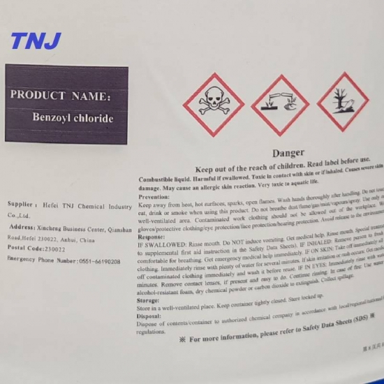 Hefei TNJ Chemical is a professional Benzoyl chloride factory with more than 12 years history in Benzoyl chloride, and now it is the key Benzoyl chloride suppliers from China. We guarantee high quality and competitive price. If you need to buy Benzoyl chloride, please don't hesitate to contact sales@tnjchem.com